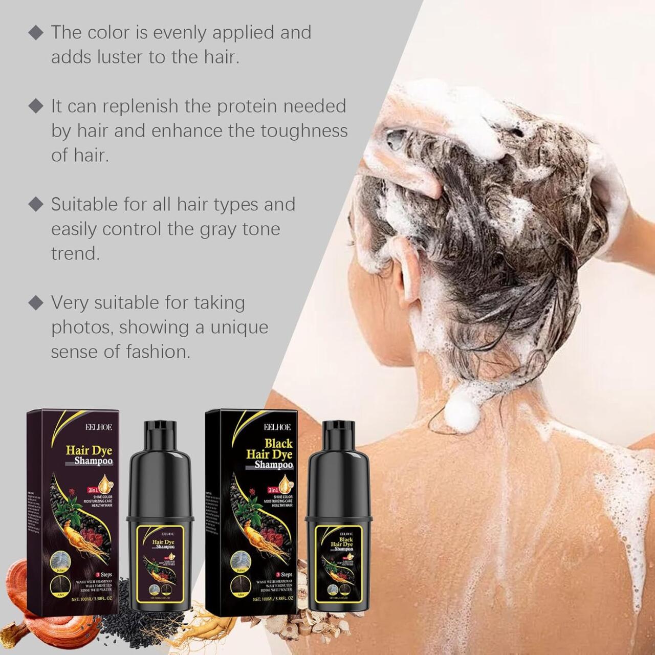 Transforma tu rutina capilar con el champú tinte negro 3 en 1 de EELHOE. Este innovador producto no solo cubre canas y revitaliza tu color, sino que también nutre e hidrata el cabello en cada aplicación. Fácil de usar y con resultados duraderos, es la solución perfecta para un cabello oscuro, brillante y saludable.