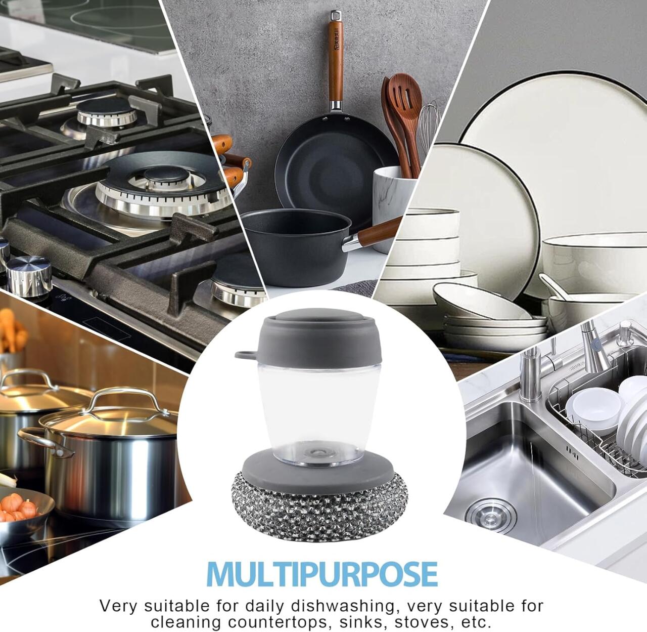 Este cepillo multifuncional es la solución perfecta para mantener tus utensilios de cocina impecables. Diseñado con materiales duraderos, cuenta con un dispensador de jabón integrado, un cómodo agarre ergonómico y cabezal para una limpieza eficiente y económica.